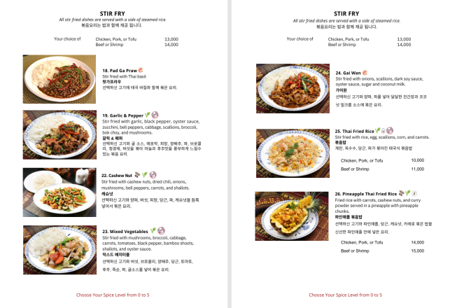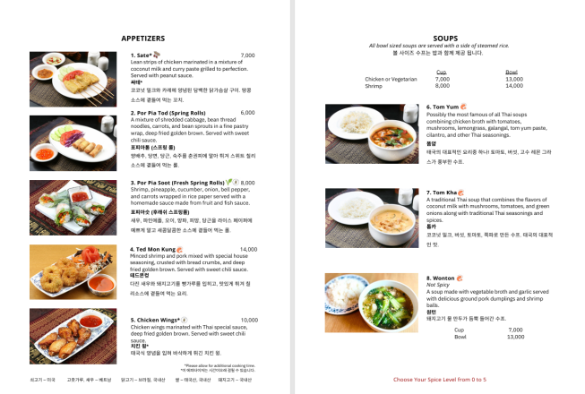 14,000원 얇게 썰어진 파파야에 레몬즙,피쉬소스,토마토,당근,마늘,땅콩,고추와 함께섞어진 매콤새콤한 샐러드